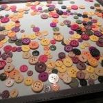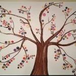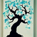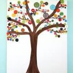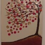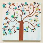 - Using your glue gun, adhere a variety of buttons along the lines of the branches but not overcrowding them in any one spot. Use a variety of colors and create a beautiful button display of leaves to adorn the branches.