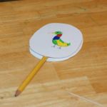 5. Lay the other picture facing outward on top of the pencil, glue and press to seal the two pieces together around the pencil.