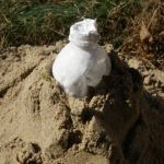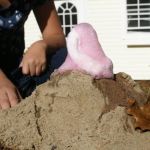 3. Outside, build a mound of dirt around your water bottle so that the bottle is centered and the mouth of the bottle remains uncovered at the peak of the mountain of dirt.