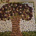 - Fill in the remainder to the picture with glue and work quickly and carefully to place beans of different kinds onto the glue covered spaces until all are covered.