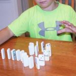 - When you are finished lining up the dominoes, tap the first domino in the run over and set off the chain reaction of dominoes.