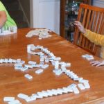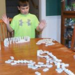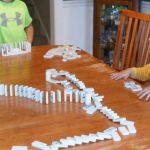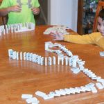 A favorite playtime activity in our house is creating a Domino Run. This activity is accomplished by lining dominoes up in a continuous line that is straight or curvy or spiral in shape. You stand them up on one end and line them up close enough together so that when one falls, they all will knock the one after it down. Use care when setting up a Domino Run as one wrong move or slip of the hand will spark a chain reaction of dominoes that will leave you starting over.