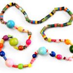 - Thread the Duck Tape beads onto a pipe cleaner, craft wire or string and tie the ends together to create a necklace or a bracelet.