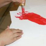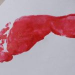 - Use your paintbrush to thoroughly paint the bottom of a foot and step down onto a piece of paper so that the foot is on an angle with the toes facing toward the bottom corner.