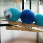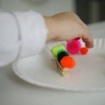 - Stick each pom pom one after another along the length of the clothespin.