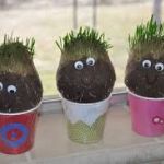 In about 4-5 days, the grass on your Grasshead Friends will begin to sprout. Water them lightly each day and enjoy the excitement of watching the grass hair grow over a period of days and weeks. Watch it grow long, and consider having a barber shop activity and give them a trim.