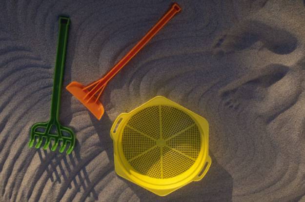- Mesh bag with sand toys.