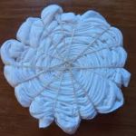 6. Next take your elastic bands and tie them around the twisted fabric round in a criss cross fashion. You will likely use 4 or 5 bands.