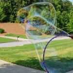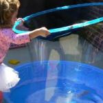 - You can also simply dip the hula hoop into the pool filled with bubbles and run in the grass with the hoop which will also create amazingly large bubbles.