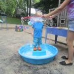 Capture yourself inside a giant bubble when you play using hula hoop bubbles or simply create enormous bubbles with a hula hoop as your wand. Bubbles are so magically fun for adults and children alike. Try out something new by playing with hula hoop bubbles and entertain the little ones for hours. Note that bubbles can be slippery so use care getting in and out of the pool during this activity.