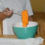 5. Use a spoon or a fork to remove the hardened mass from the liquid. If it is still too liquidy, squish it around in your hands for a moment and place it back into the liquid for a stint.
