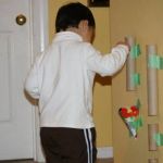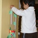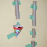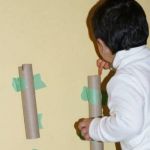 - Simply tape some paper tubes vertically onto a small section of wall space with your painter's tape. Tape two together for longer tubes or use toilet paper tubes and paper towel tubes for shorter ones. Tape them to the wall so that the tops are within in your toddler's reach.