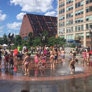 Summertime in Boston is so much fun when kids are skipping through fountains and splashing in shallow pools of water throughout the city. There is plenty of water fun to be had in neighborhoods all around Boston