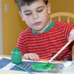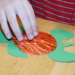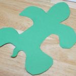 - While the paint is drying, take your green card stock and sketch out a drawing of a turtle body like the one shown above. It should include two legs, two arms, an oval head and a curvy thin triangular tail.