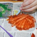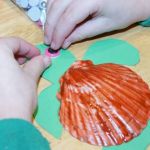 - Affix the seashell with fanning portion of the shell facing the head to the card stock with your glue gun.