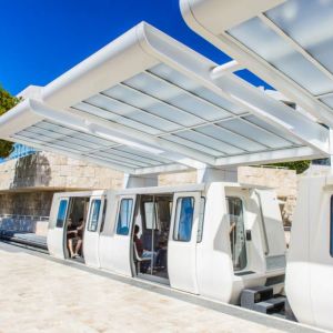 • A computer-operated tram takes you from the street-level entrance to the top of the hill. The tram is fully accessible. From the parking structure, take the elevators up to the Lower Tram Station (T1).