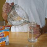 - Add 2 heaping tbs. of baking soda and 1/4 cup vinegar to the water.