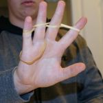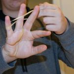 - Place a rubber band over your first and second fingers while keeping your hand open.