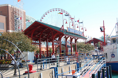 Navy Pier - One of Chicago's landmarks the Navy Pier is a great place for shopping and dining. Build on a 3000 foot pier which was built in 1916 it is one of the must visits for any trip to Chicago.